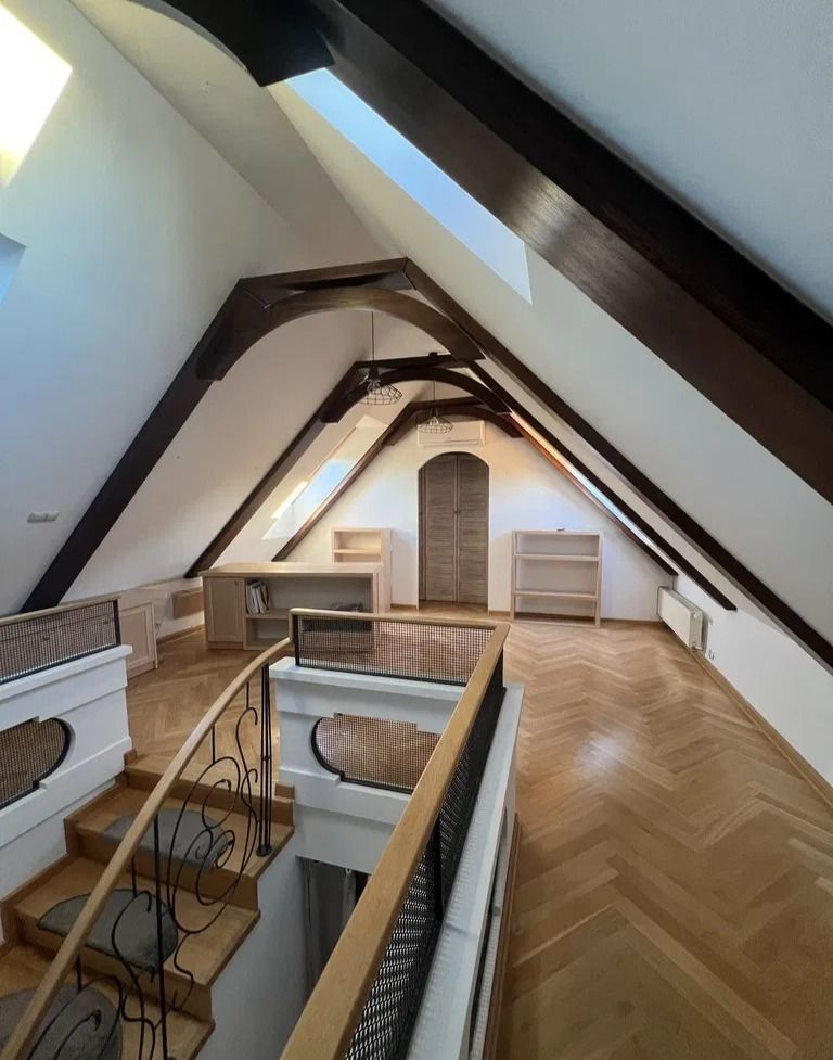 Poddasze: otwarta przestrzeń z garderobą, z nową klimatyzacją, 4 okna dachowe; idealne miejsce na gabinet, dodatkową sypialnię, miejsce do ćwiczeń lub pokój zabaw;