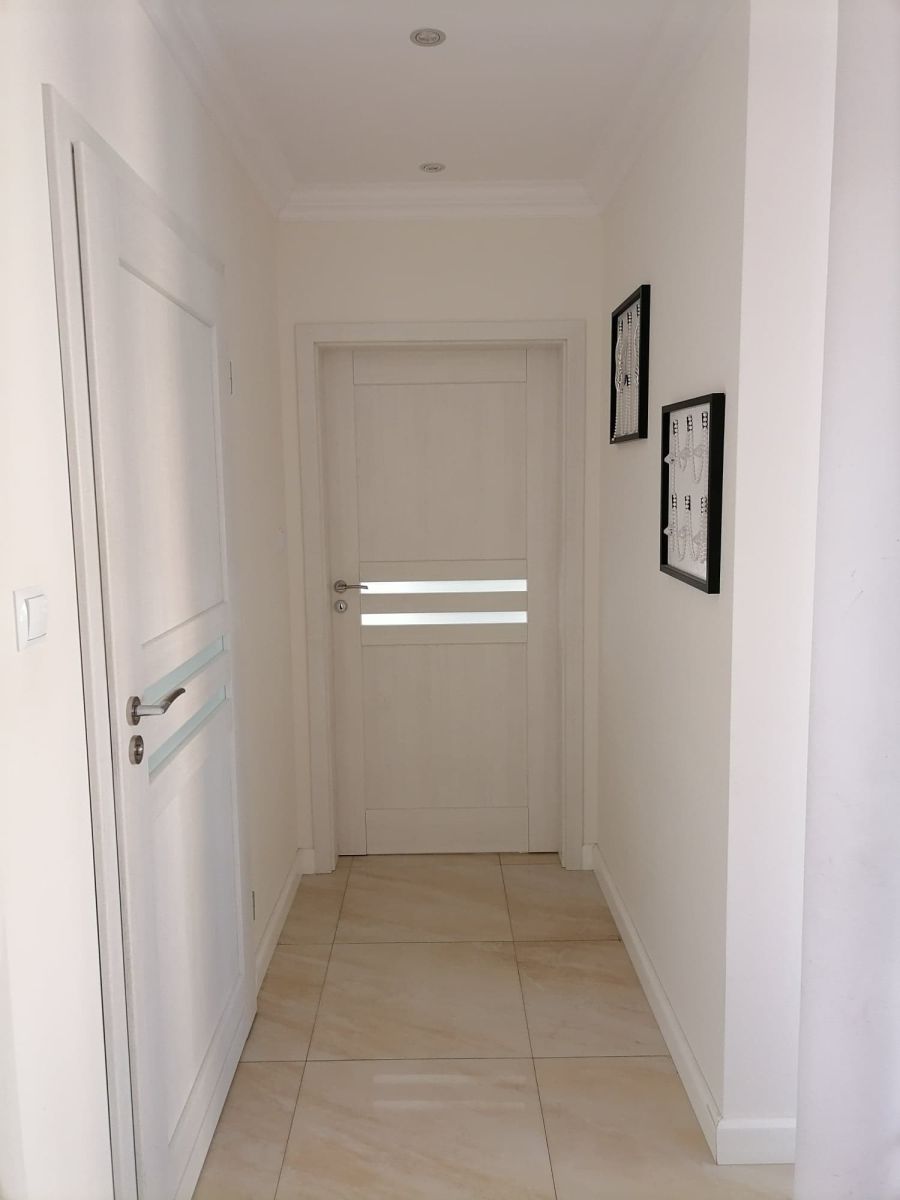 rozkład pomieszczeń: na parterze znajduje się salon z aneksem kuchennym, dwie sypialnie, holl, pom. gospodarcze, łazienka, wiatrołap, na piętrze łazienka, garderoba i 2 ustawne sypialnie. Ogrzewanie podłogowe dół: salon z aneksem kuchennym, holl, łazienka -ogrzewanie podłogowe, dwie sypialnie kaloryfery. Góra ogrzewanie podłogowe łazielka i holl, w sypialniach kaloryfery.