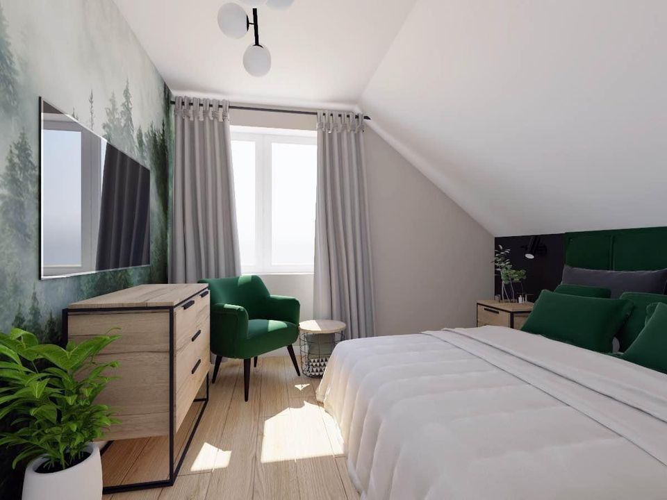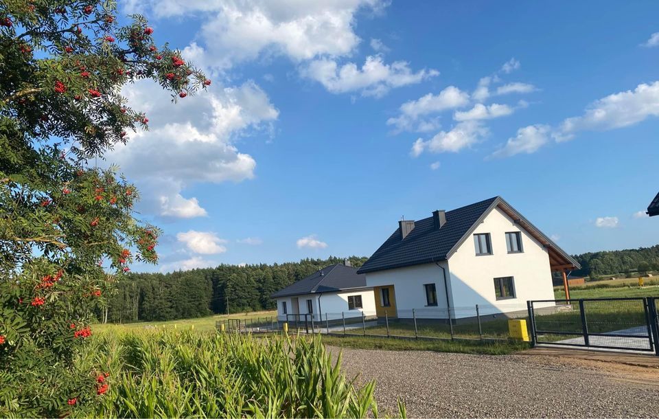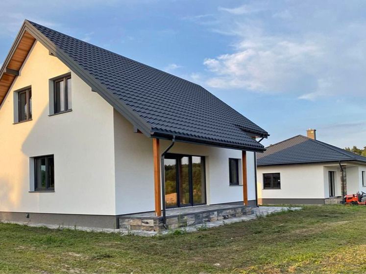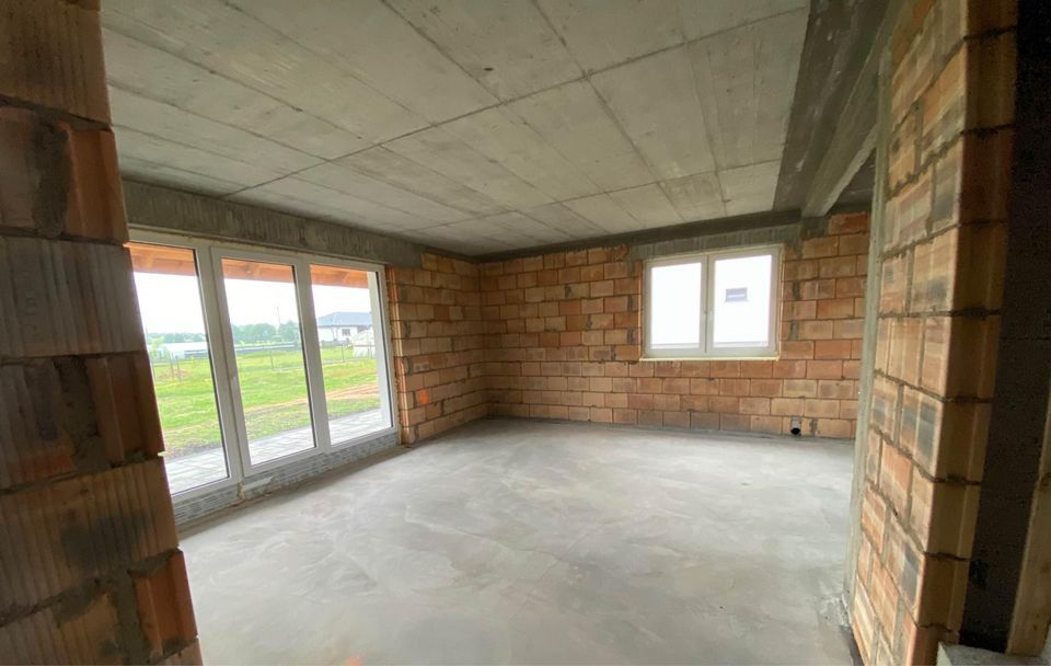 Nowy wolnostojący dom jednorodzinny w m. Wyszki, z poddaszem użytkowym w skład którego wchodzą: salon z kuchnią i spiżarnią, 4 pokoje, 2 garderoby, pralnia oraz zadaszony taras 10 m2. Powierzchnia użytkowa: 131,9 m2 (powierzchnia podłóg 144, 2 m2). Powierzenia działki 911 m2. Oferta obejmuje stan surowy zamknięty z pokryciem dachu, oknami i drzwiami zewnętrznymi, elewacją a także wykończony taras, Utwardzenie terenu z kostki betonowej, ogrodzenie działki od frontu oraz media podłączone do budynku: woda z sieci wodociągowej, prąd, gaz sieciowy, kanalizacja do zbiornika szczelnego.