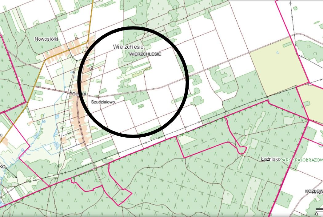 Działka bezpośrednio przy drodze gminnej , do najbliższych zabudowań