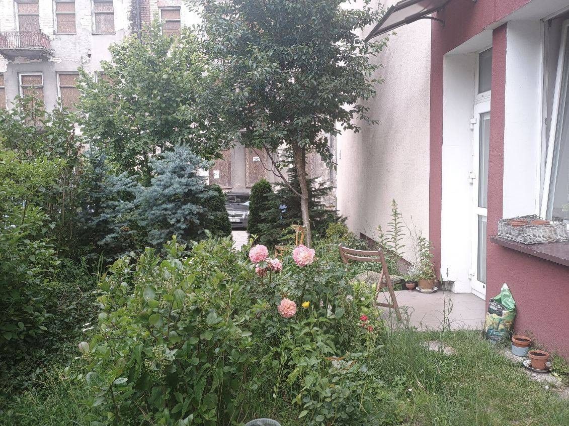 Do mieszkania przynależy pas ziemi w formie ogrodu o powierzchni 101,35 m2, obecnie w procesie wykupu na własność raz drugi ogródek od strony klatki schodowej.
