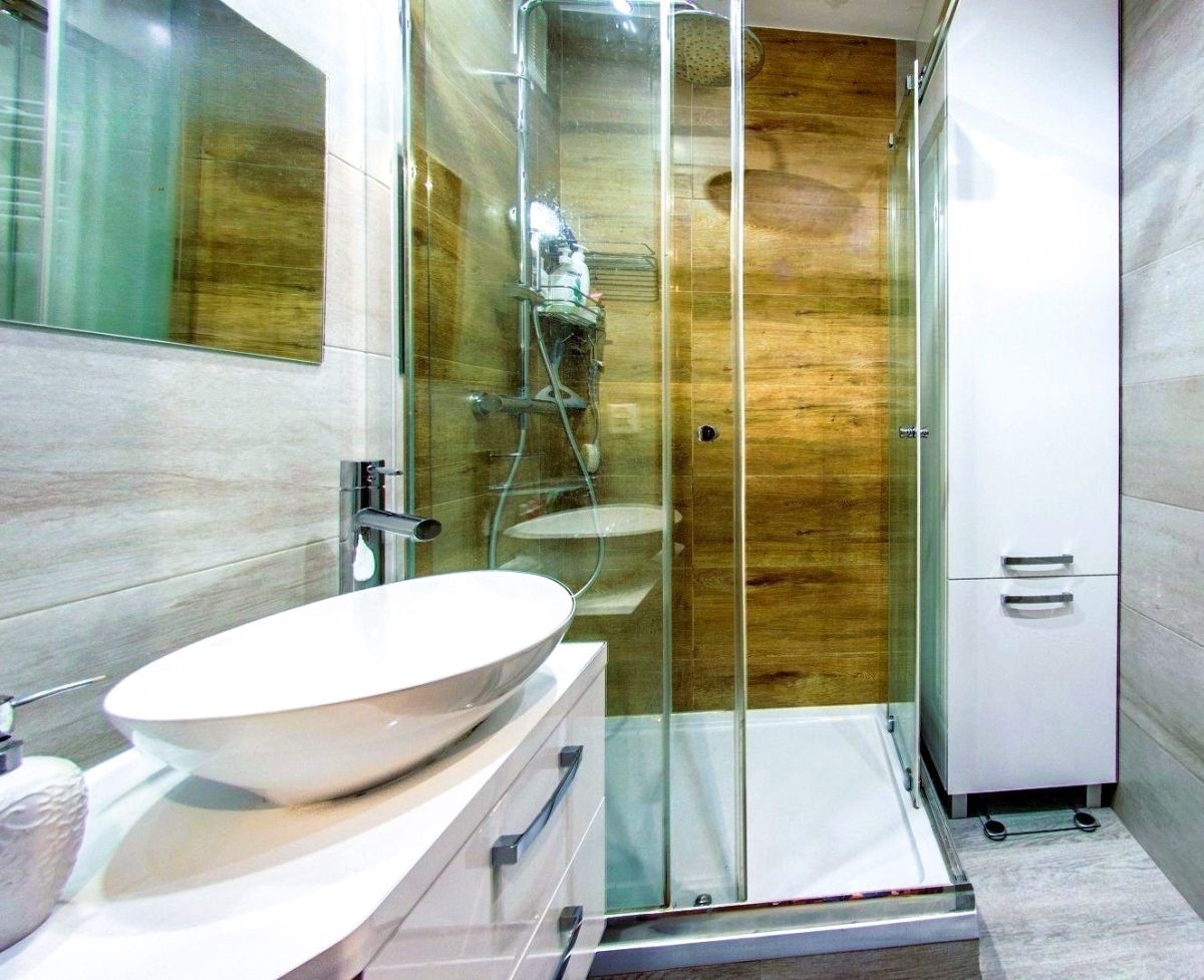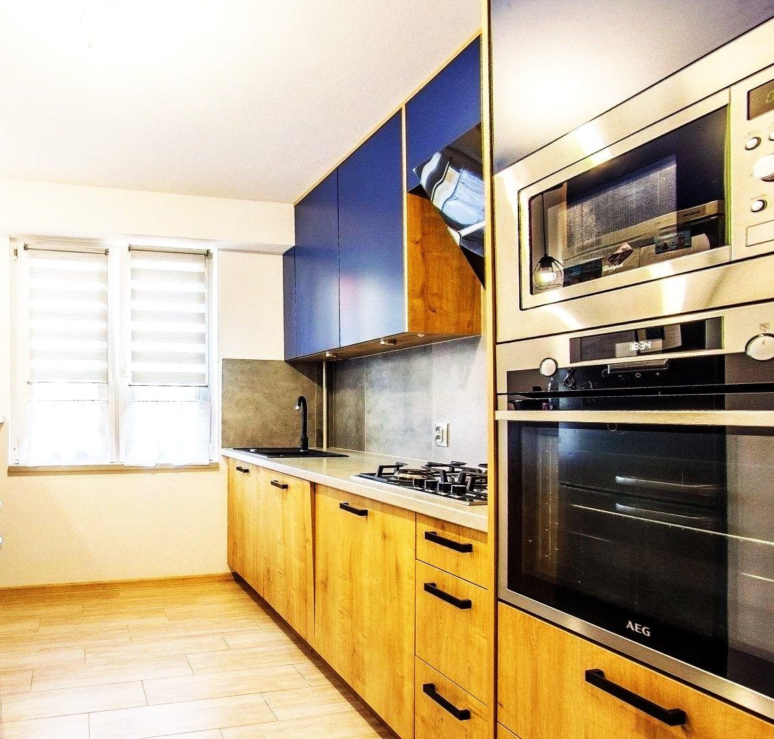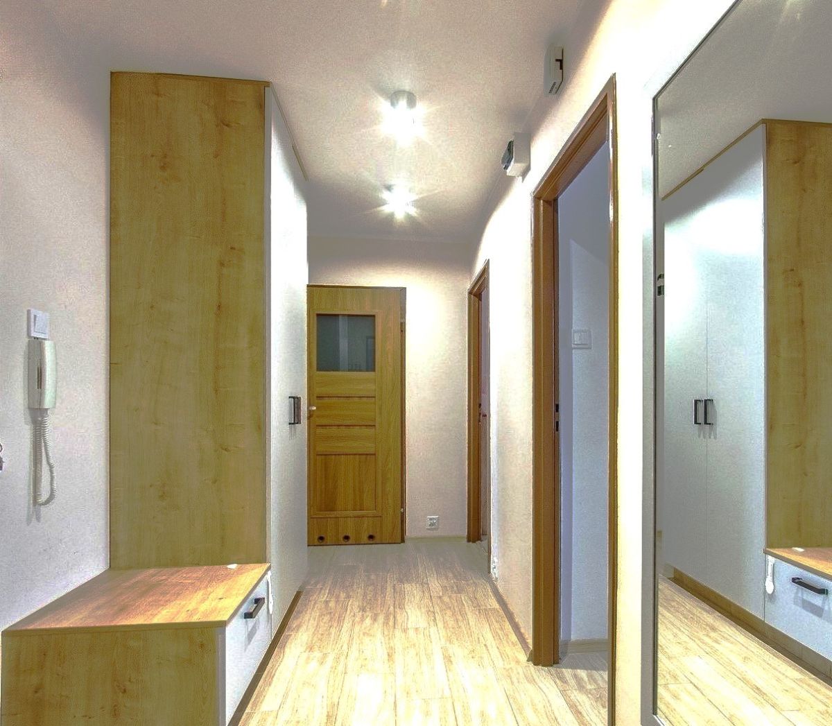 W pełni umeblowana kuchnia wraz ze sprzętem: piekarnik, płytka gazowa, okap, zmywarka, lodówka, mikrofalówka. W salonie jest rozkładana kanapa, stolik kawowy, stół z krzesłami, witryny, itp. W łazience umywalka, prysznic, pralka oraz szafka z lustrem. W przedpokoju znajduje się siedzisko z wieszakami i szafka na buty.