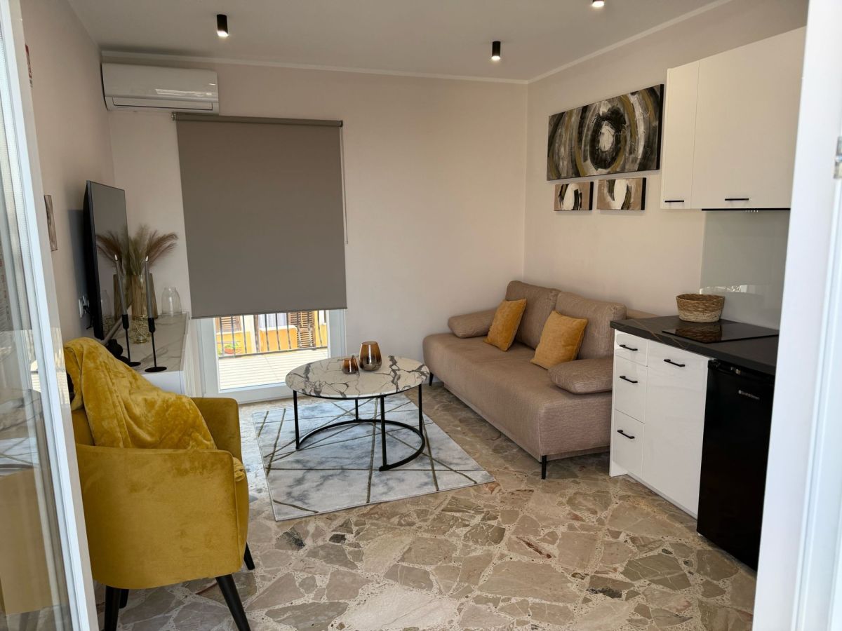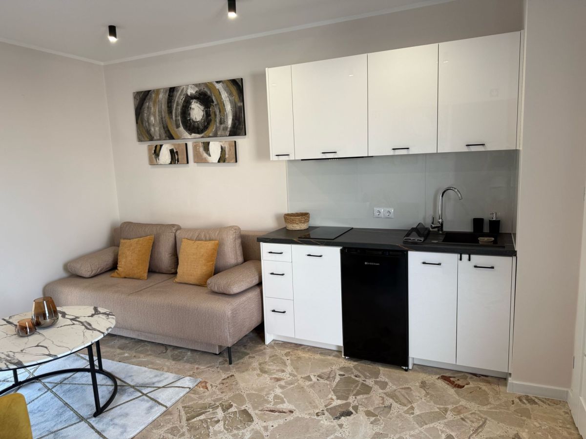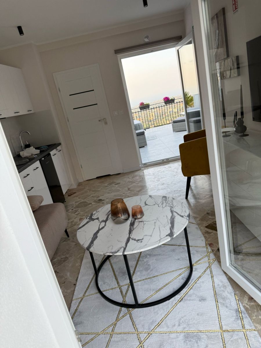 30 m2:1 pokoje, kuchnia, łazienka, taras z widokiem na morze.