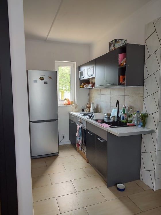 Rozkład pomieszczeń: salon, 2 sypialnie, kuchnia, korytarz i łazienka, pomieszczenie gospodarcze.